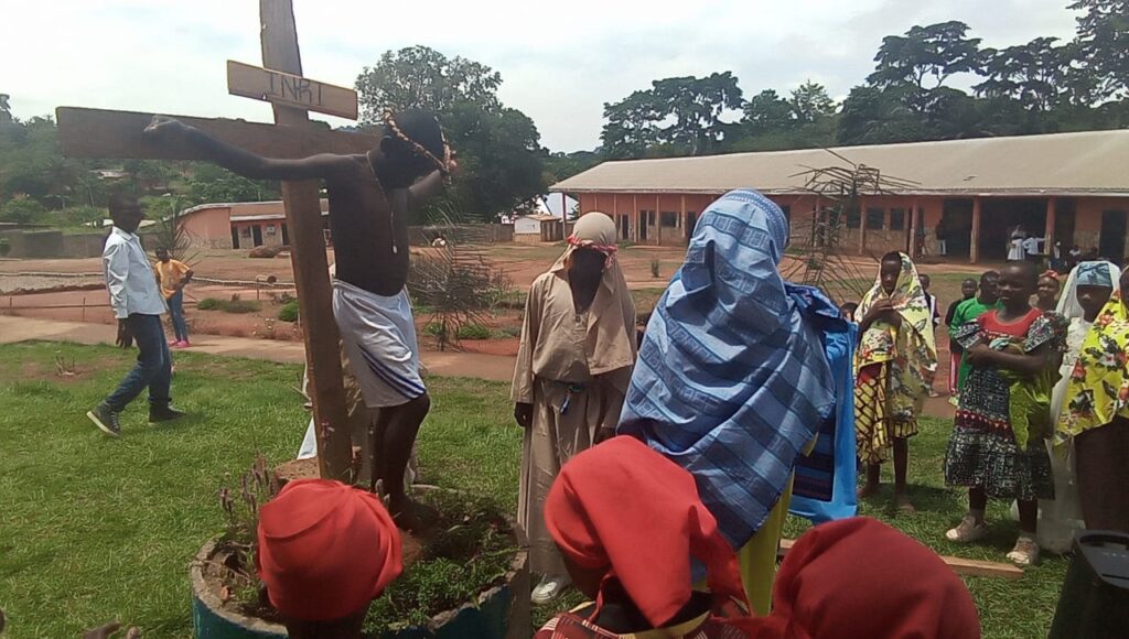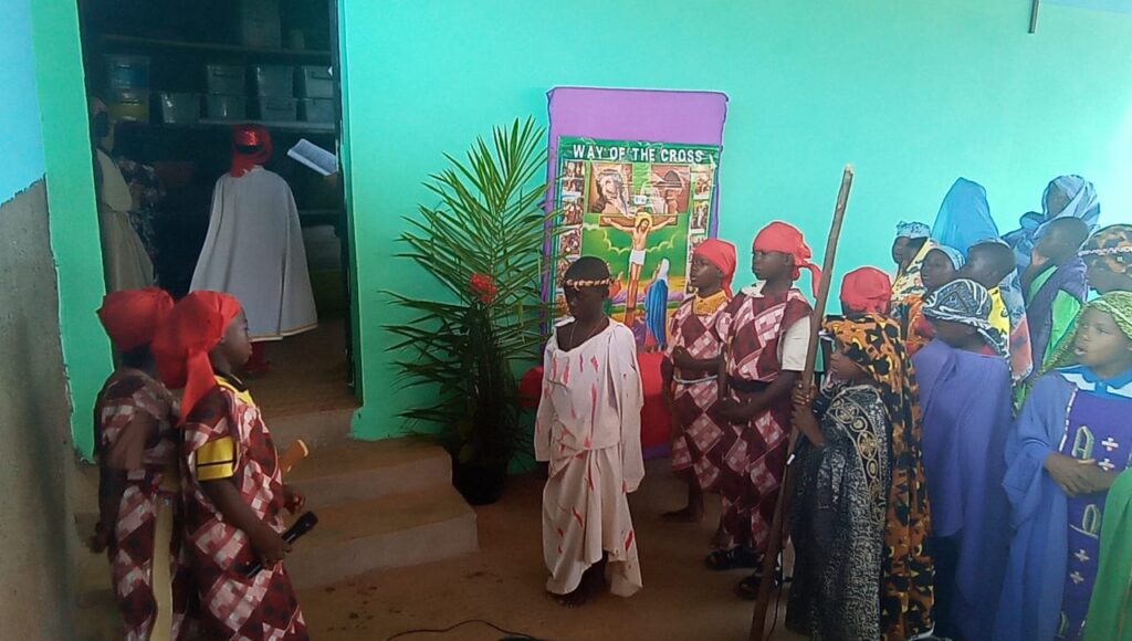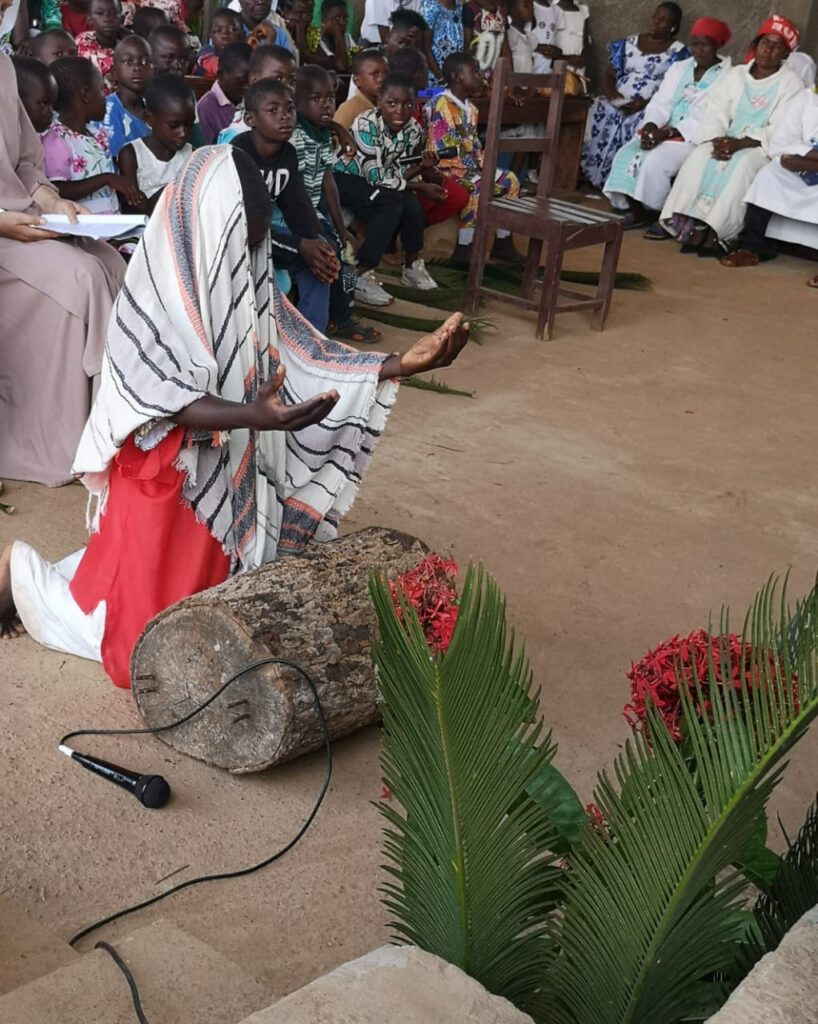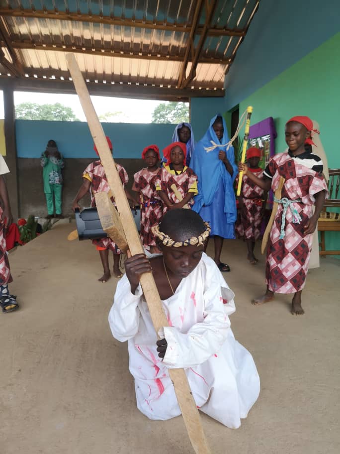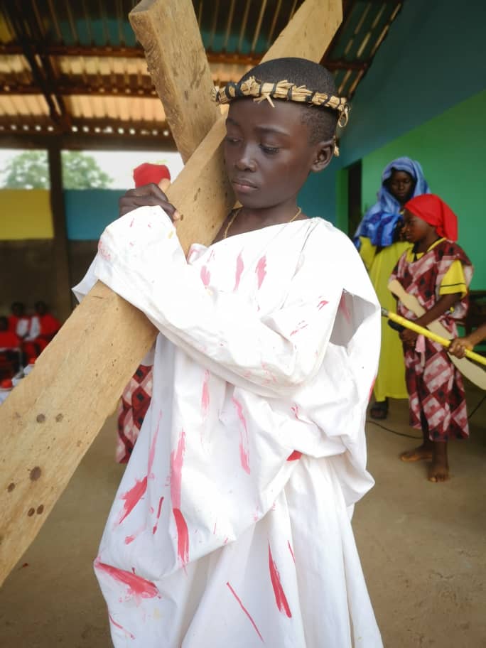 W Niedzielę Palmową dzieci szkolne w wieku 10-12 lat z parafii w Koudandengu, przygotowane przez s. Idę,odegrały drogę krzyżowa. W tym wyjątkowym dniu, pełnym emocji i duchowej głębi, mali wierni odtworzyli sceny z Męki Pańskiej, wzruszając wszystkich uczestników. Każdy gest i każda scena były pełne zaangażowania, co sprawiło, że uczestnicy wydarzenia poczuli się głęboko poruszeni. Wszyscy, zarówno dzieci, jak i dorośli, przeżyli to wydarzenie z wielką intensywnością emocjonalną, zbliżając się do tajemnicy zbawienia.