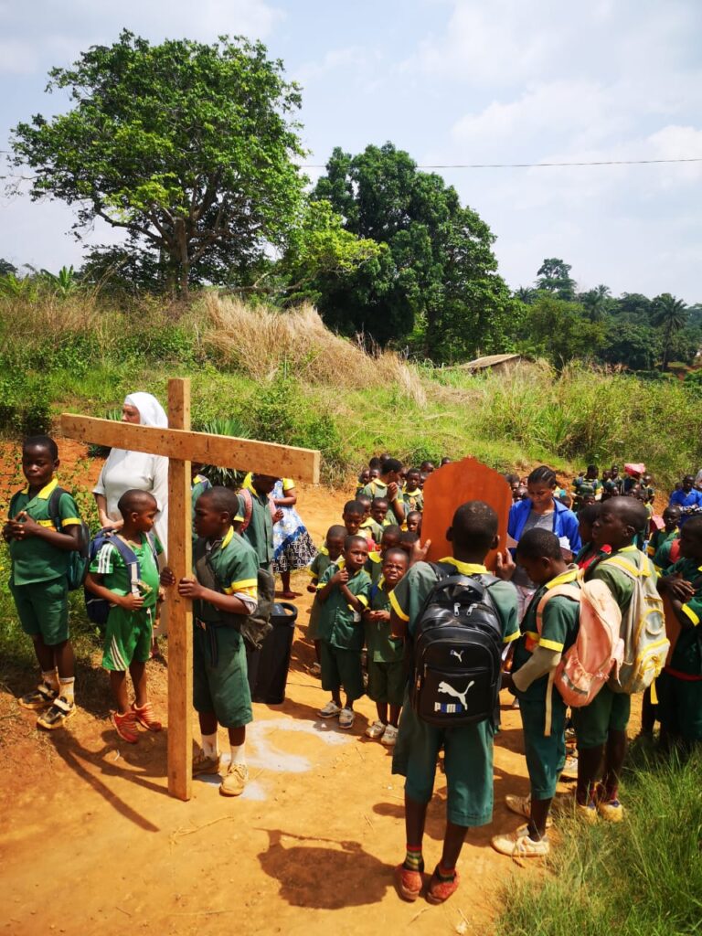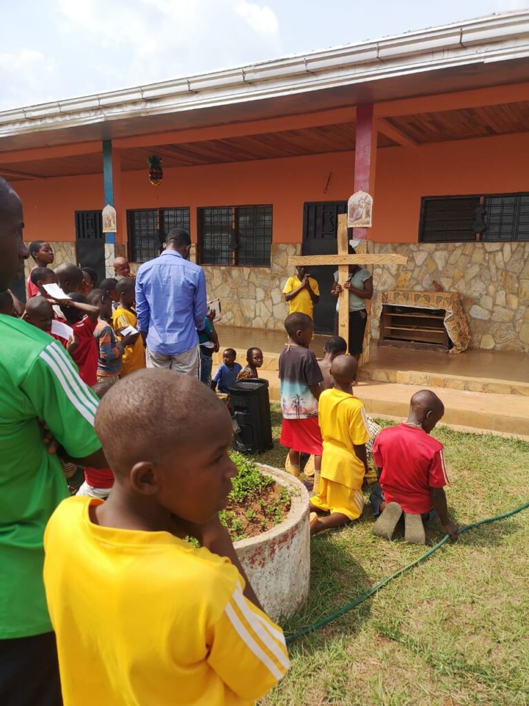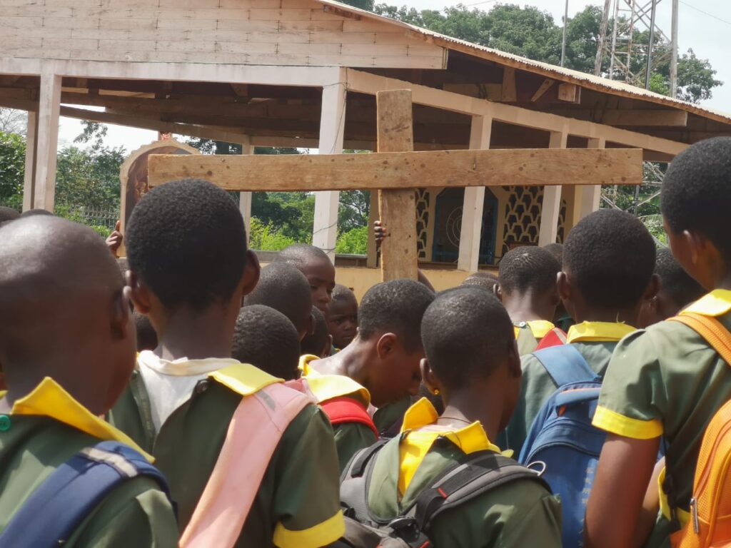 Nabożeństwo Drogi Krzyżowej odbyło się na terenie szkoły w Koudandengu, gdzie dzieci, pod przewodnictwem s. Idy Karmelitanki Dzieciątka Jezus – dyrektorki szkoły, z wielkim zaangażowaniem uczestniczyły w tym misterium. Rozważania były odczytywane przez uczniów, którzy oddawali się refleksji nad Męką Pana Jezusa. Dzieci nie tylko czytały teksty, ale także śpiewały pieśni pasyjne i niosły krzyż, co sprawiło, że całe nabożeństwo nabrało szczególnego, poruszającego charakteru. To wydarzenie było dla nich głębokim doświadczeniem duchowym, które umocniło ich wiarę i pokorę.